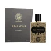 The fragrance features a bold statement, with a dark, mushy rose and a heart of flowers like geranium and jasmine, enriched by saffron. The fragrance captures attention with its intriguing accord, a clean base, and a blend of dark patchouly notes, Styrax, and lignum vitae. Mosses bind and envelop the fragrance.