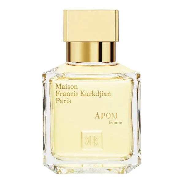 MFK Apom Femme features a floral and woody scent profile, blending notes of jasmine, orange blossom, and precious woods. This fragrance evokes a sense of elegance and warmth, inspired by the concept of femininity in the Maison Francis Kurkdjian vision.